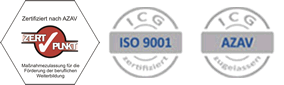 Wir sind zugelassener Träger nach der AZAV und alle unsere Angebote sind entsprechend zertifiziert. Ihre Teilnahme kann somit durch die Agentur für Arbeit oder das Jobcenter per Bildungsgutschein zu 100% gefördert werden.